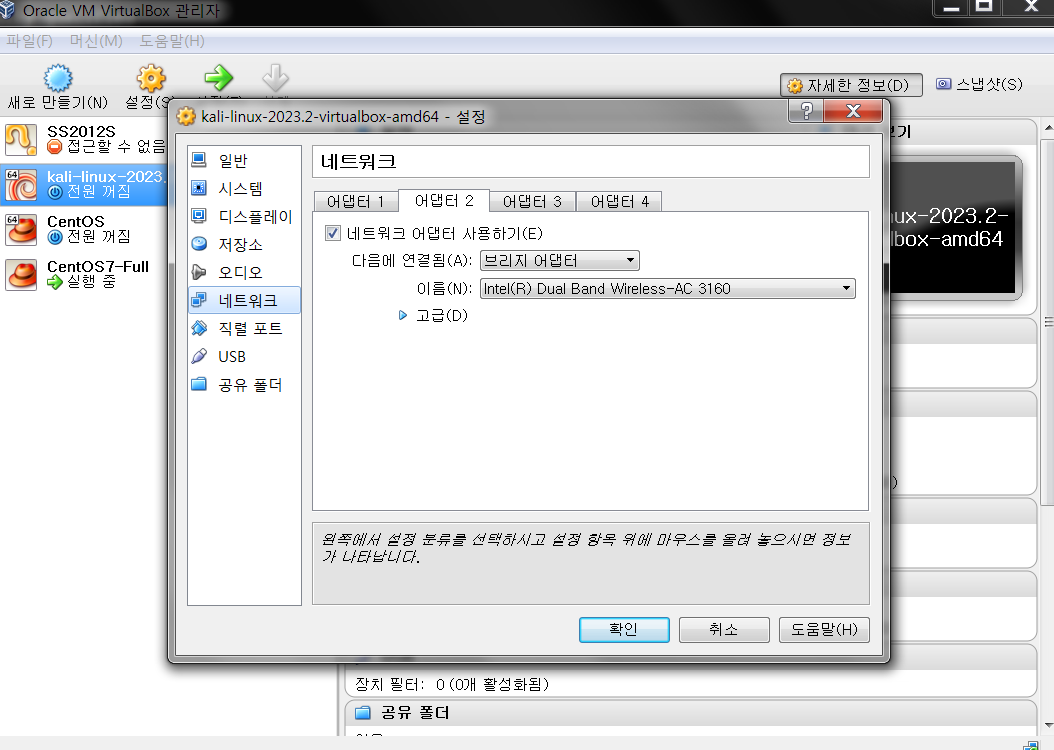 kali-linux 에 브리지 네트워크 추가