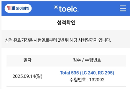 Toeic 후기 (2025년 9월 14일)