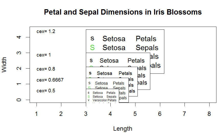 text (1, y.leg[i] - 0.1, paste("cex=", formatC(cexv[i])), cex = 0.8, adj = 0)